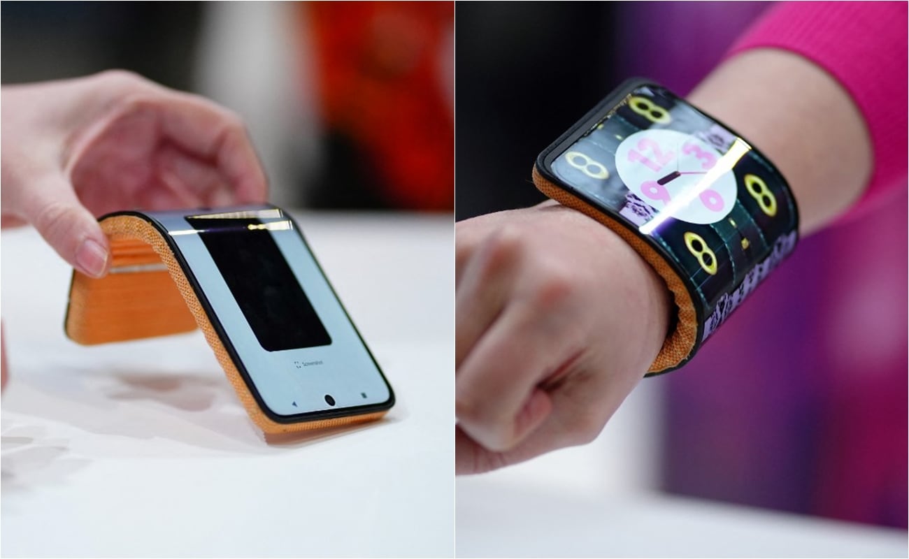 Así es el plegable de Motorola, conocido como ‘brazophone’. (Fotos: AFP)